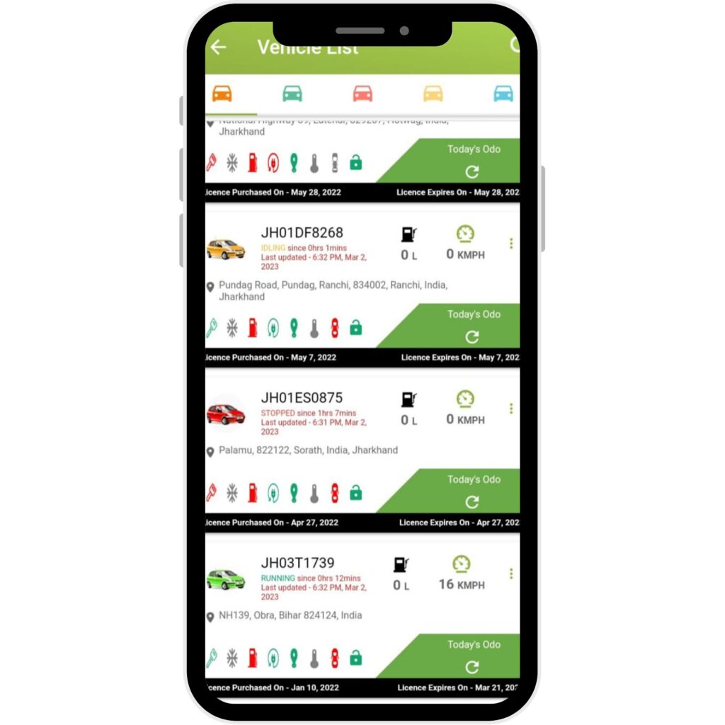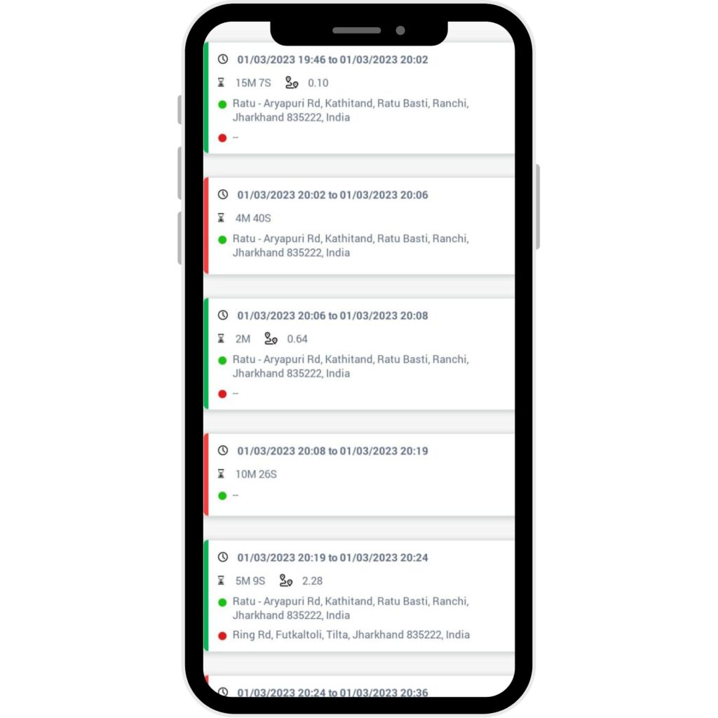 All the daily stats like Run time, Idle time, Stoppage time, Distance, Average speed and Max speed are shown on daily basis.