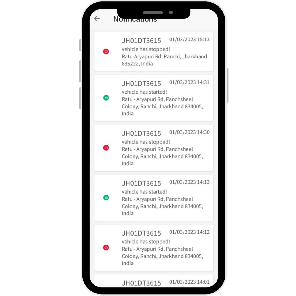 Get notified in case of theft by alarm notification. (if ignition is turned on or vehicle is moved via towing or pushing)